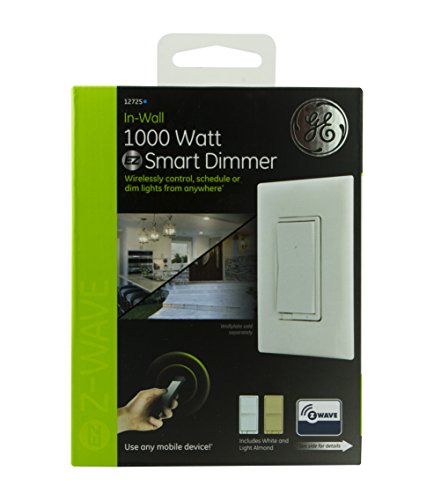 GE Z-Wave Wireless Smart Lighting Control 1,000-Watt Dimmer Switch for Incandescent / Halogen Bulbs, In-Wall, Includes White & Light Almond Paddles, Works with Amazon Alexa, 12725