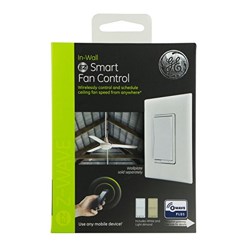 New Model: GE Z-Wave Plus Wireless Smart Fan Speed Control, 3-Speed, In-Wall, Includes White & Light Almond Paddles, Works with Amazon Alexa, 14287