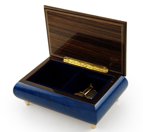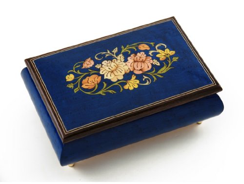 - Title : Remarkable Dark Blue Floral Theme Wood Inlay Musical Jewelry Box with 18 Note Tune-Little Bo Peep - SWISS