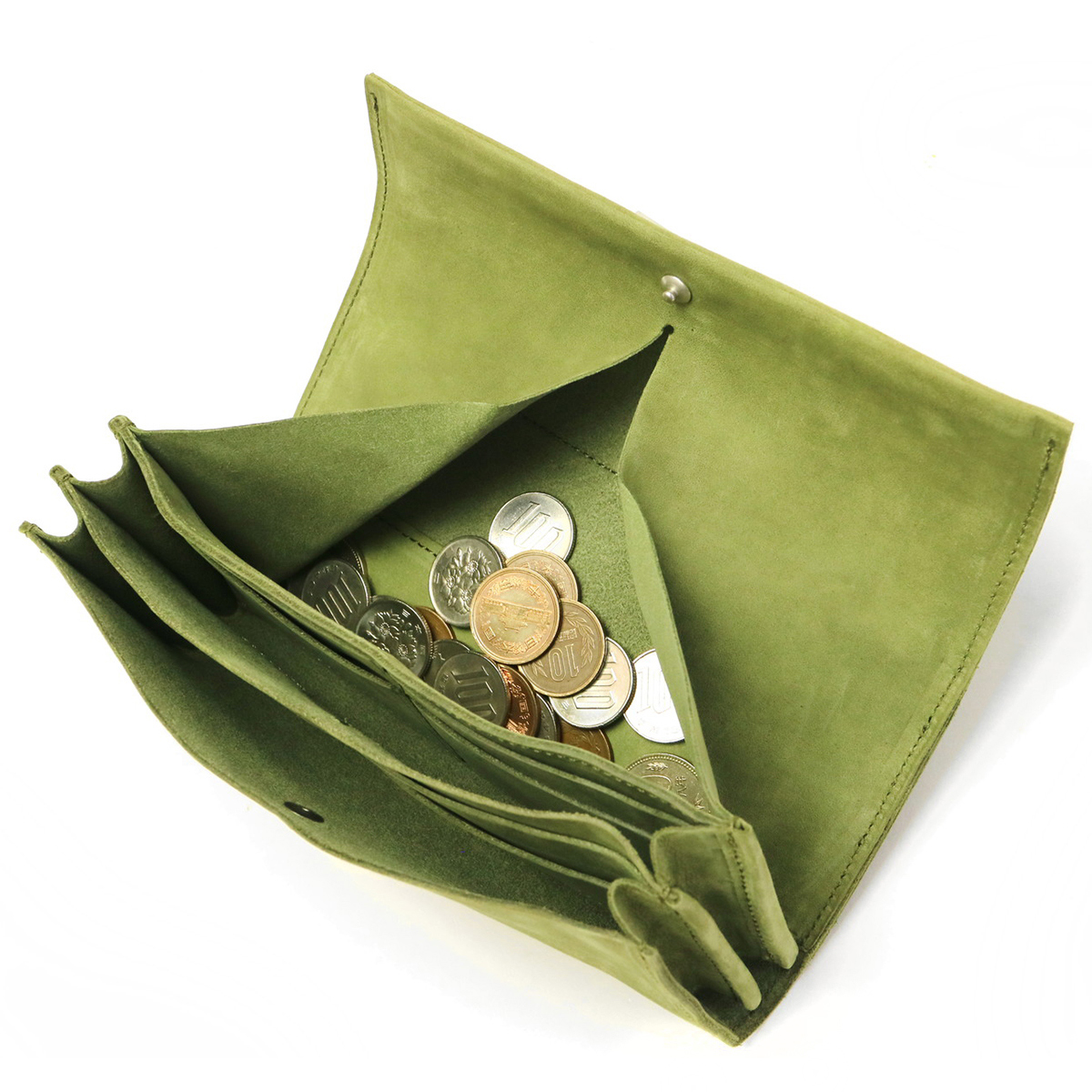 あくびをしているみたいに大きく口が開くのでモデル名は「YAWN(あくび)WALLET」。大きく開く特徴的な収納部は、小銭入れにしてもカードを収納しても良く、好みの使い方でお楽しみいただけます。