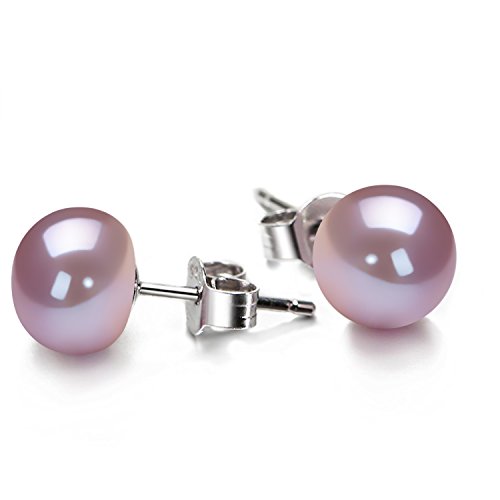 Sterling Silver Freshwater Cultured Women Pearl Earrings 6-6.5mm, Lavender