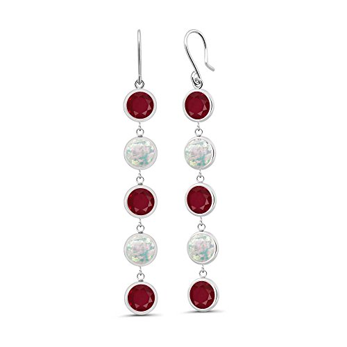 -. Title : 3.60 Ct Round Red Ruby White Simulated Opal 925 Sterling Silver Earrings