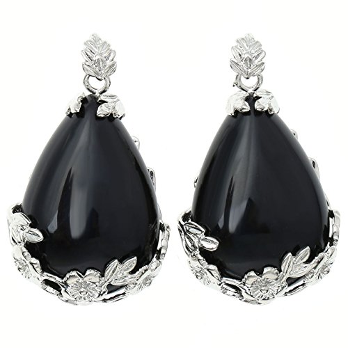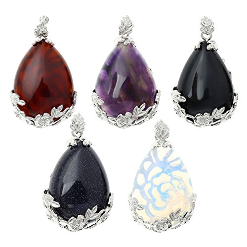 Top Plaza Waterdrop Pendants, (Natural) Amethyst Carnelian Black Agate, Opalite, (Synthetic) Bluesand Stone, 5pcs