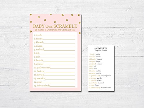 48 cnt Baby Shower Word Scramble Game (Faux Gold Glitter on Pink)