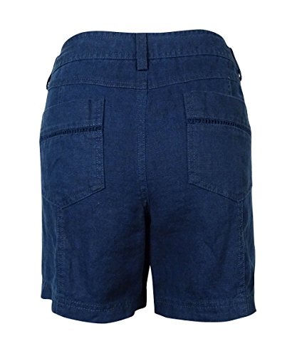 Shorts feature linen fabric, front and back pockets, crochet eyelet trim, belt loops and zip fly with button closure.