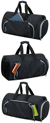Durable gym bag small sports duffel bag with shoes compartment for men and women. The perfect size for Gym or sports: X-Small size:15.7L"X8W"X8H" with shoes compartment 11.5 inches length, Small size: 20.5L"X11W"X11H" with shoes compartment 13.5 inches length. There are 1 side mesh pocket, 1 side shoes compartment, two outer zipped pockets for quick access items, 1 inner zip pocket and a main compartments, roomy for gym clothes, shoes, water bottles, wallet, cell phone, headphones, keys etc. It's the perfect size fits gym lockers easily. Simple bag without too many bulky design. Adjustable shoulder strap so you can wear it at the length that works for you, the pad on the shoulder strap makes it comfortable wearing without hurting your neck. We provide lifetime warranty, please contact us through order whenever you meet quality problem, buy with no worries! 0 |