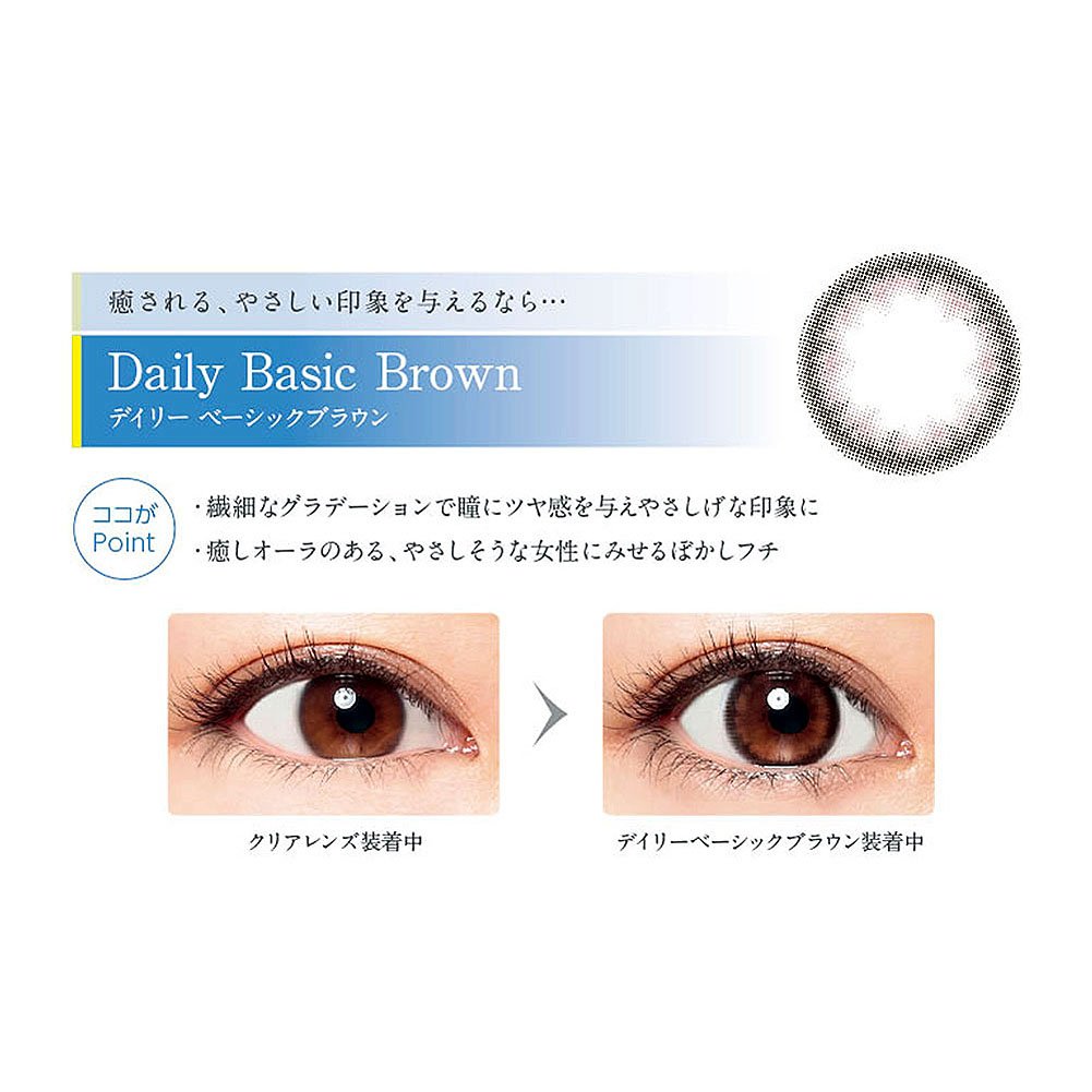 The contrast of a slightly black outer border and inner brown brings a sense of transparency to the pupil and directs a natural and healthy woman.