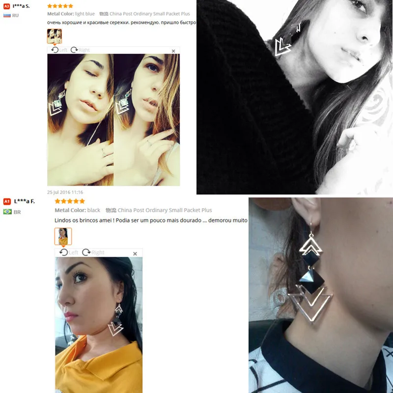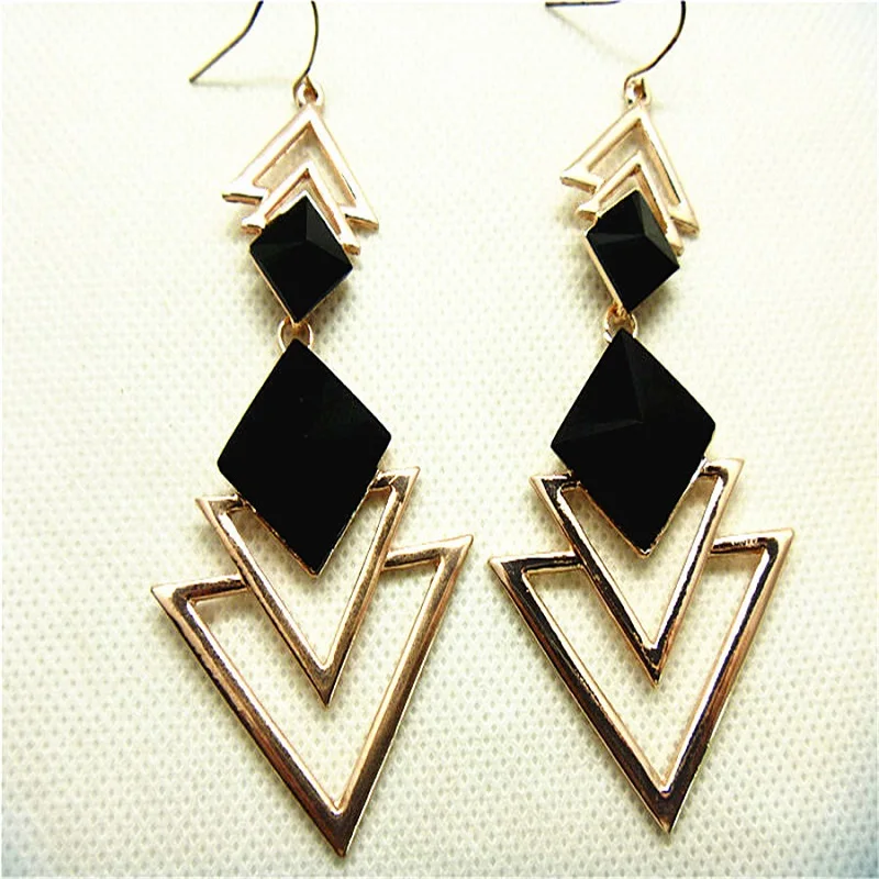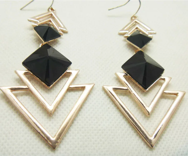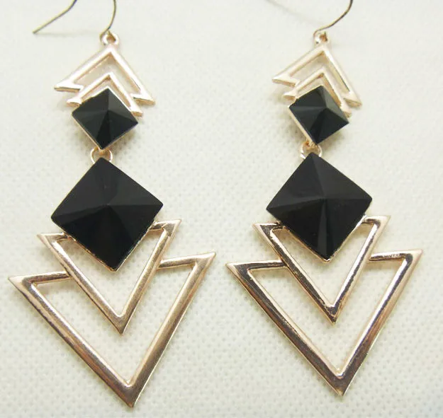 sex:womens gold triangle earrings long