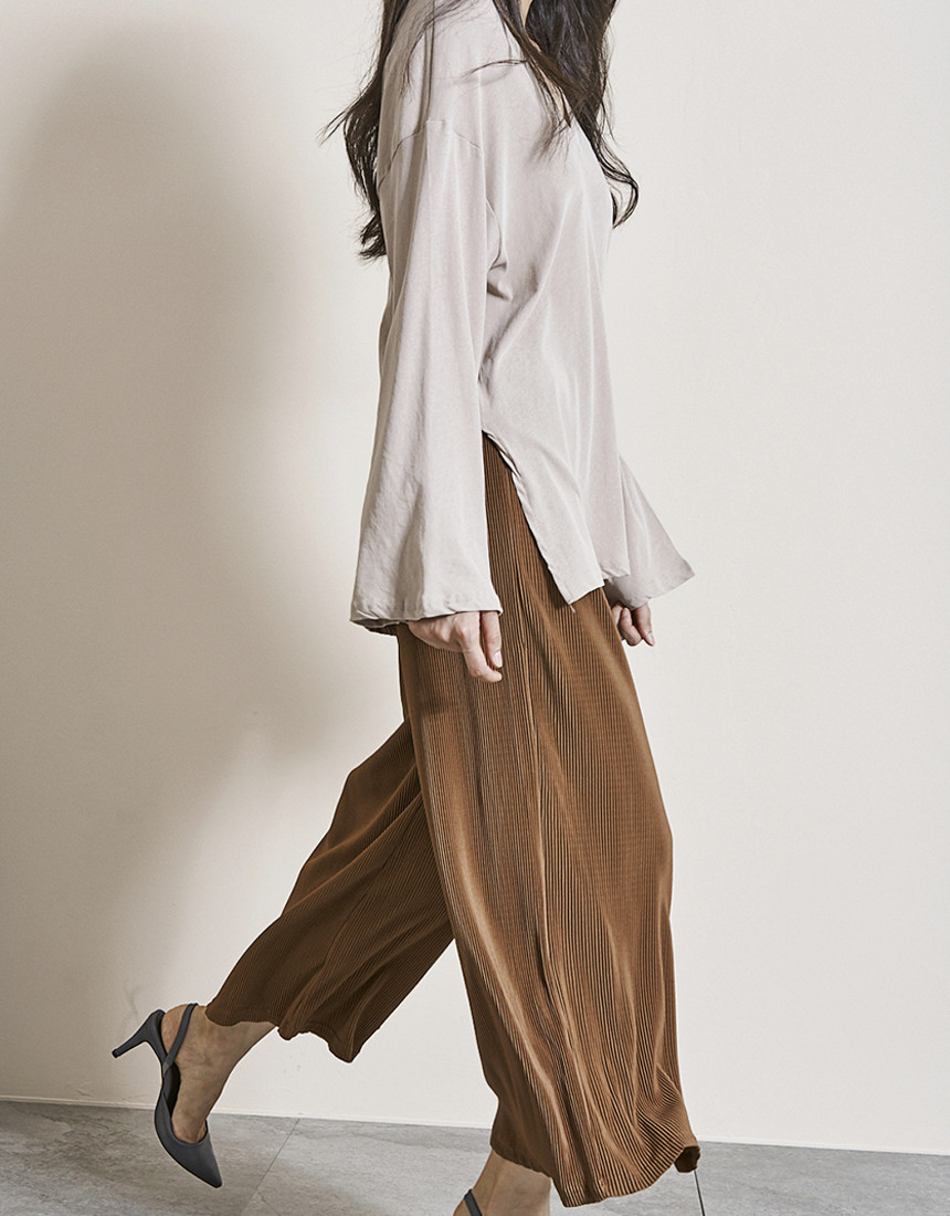 폴리소재로 하늘하늘거리는 원단으로 주름이 풍성해서 착용했을때 더욱 예쁜 제품이에요