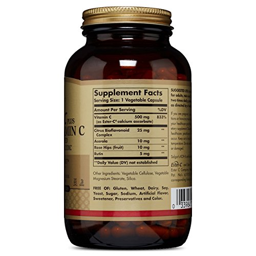 Ester-C Plus is exclusively formulated by Solgar and provides a patented, pH neutral (non acidic) Ester-C Vitamin C that is gentle on the stomach. The Vitamin C metabolites in Ester-C positively impact the retention of Vitamin C in cells, providing additional benefits. A special manufacturing process is employed to form a unique calcium ascorbate metabolite complex. This well-retained complex further incorporates natural bioflavonoids and acerola berry along with rose hips fruit.*