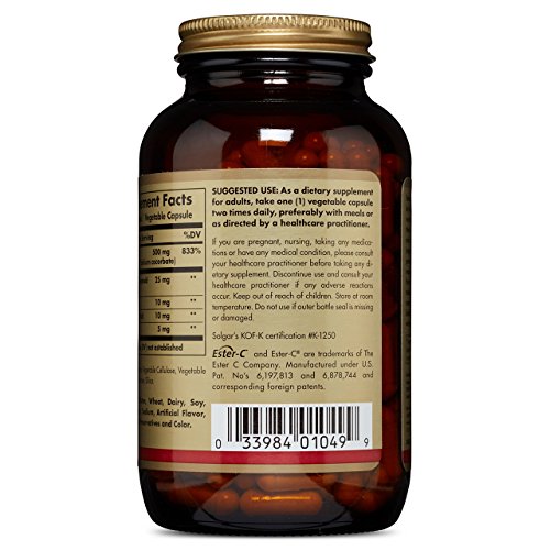 SPECIAL FORMULA: Exclusively formulated by Solgar, Ester-C Plus provides a patented pH neutral (non-acidic) Ester-C Vitamin C that is gentle on the stomach. A special manufacturing process is employed to form a unique calcium ascorbate metabolite complex