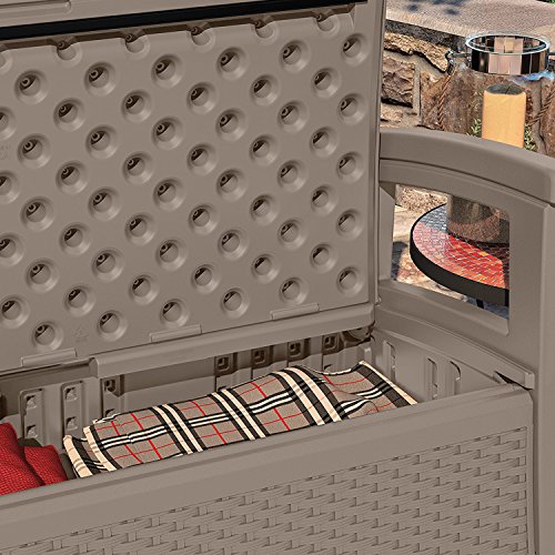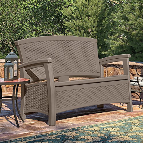-. Feature : Dimensions: 47L x 29.75W x 35.5H inches / Hardy, all-weather resin / 10-Gallon capacity / Choose from available color options / Equipped with lumbar support and extra-wide armrests