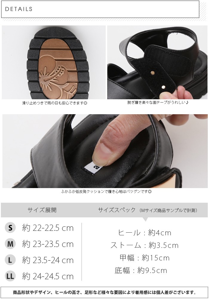 | サイズ | Sサイズ(22.0~22.5cm) Mサイズ(23.0~23.5cm) Lサイズ(23.5~24.0cm) LLサイズ(24.0~24.5cm) |