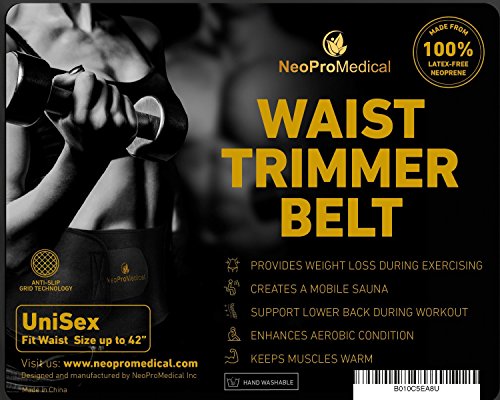 We tried all the others and discovered what is really important in an exercise belt: - Designed to work from the smallest waist and to stretch to a 46" waist - Wide enough to cover the stomach area and stay put during exercise - Rounded, double stitched edges for comfort and durability - Thick enough to produce the heat needed to get results and hold it's shape - Blend of quality Neoprene, Nylon & Polyester to form a firm bond with the velcro fastening - So comfortable that you hardly notice you are wearing it - Suitable for left or right handed for everyone to easily wrap, pat & go - Made to last and easy to wash and keep clean HOW TO WEAR NeoProMedical Waist Trimmer should only be worn during exercise for no more than 2-3 hrs at a time. Before you begin exercising, adjust your Waist Trimmer to desired position and wrap it comfortably around your abdomen. The Waist Trimmer can be worn under or over your clothing. HOW TO WASH Before Initial use: Wipe down a Waist Trimmer with a damp cloth. Use a clean cloth to dry off Waist Trimmer or air-dry overnight. After Exercise: Lather a damp cloth with soap and run down inside of Waist Trimmer several times. Then, rinse the cloth and wipe down again until there are soapy streaks left. Use a clean cloth to dry or air-dry overnight. ALLERGY NOTICE Some individuals may be sensitive to Neoprene or Neoprene blend rubber. If a rash develops discontinue use. Before starting any exercise routine please consult a physician. Always stay monitor your body why exercising and remember to stay hydrated When you put on the NeoProMedical Tummy Trimmer you will instantly feel a difference in posture and support. This effect will last throughout your entire workout, providing the best quality heat to burn fat, move cellulite and expel toxins. We know because we've tried it!Feature