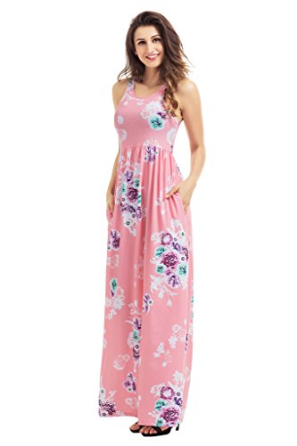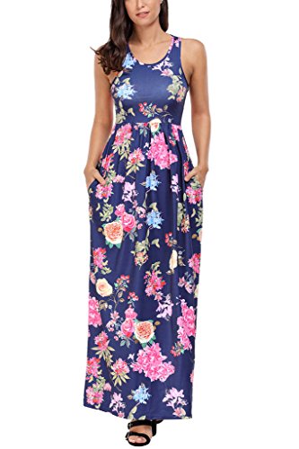 Lovezesent Women's Floral Print Round Neck Sleeveless Long Maxi Casual Dress(S-XXL)