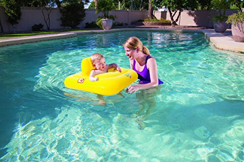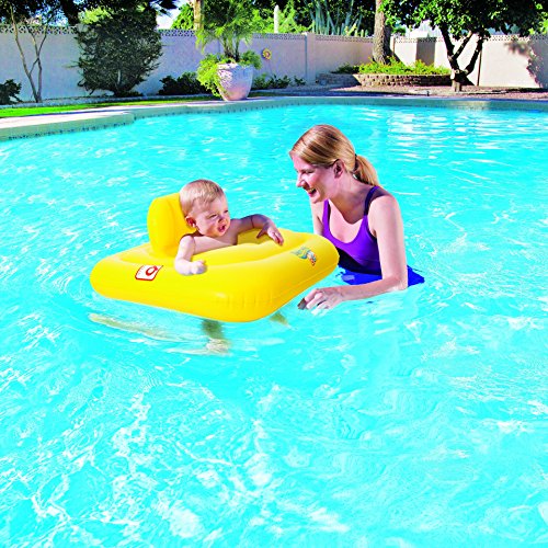 Product Description These inflatable baby support introduces babies to the water. For babies 1-2 years and between 24 and 33 lbs. Made of sturdy pre-tested vinyl. Features three air chambers with safety valves. Large square ring for balance and features a diaper style seat. 0
