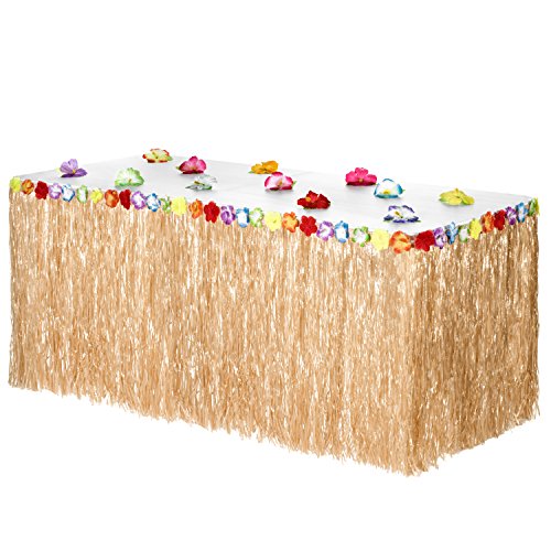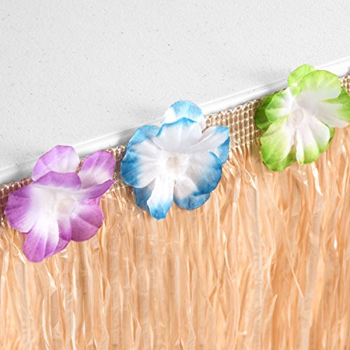 Hawaiian Luau Grass Table Skirt | Includes Adhesive | Bonus 12 Hibiscus Flowers | Perfect, Beach, Tiki, Tropical Island, Party, Luau Decoration 9ft by Luau Essentials
