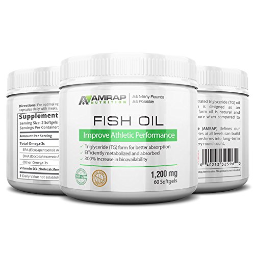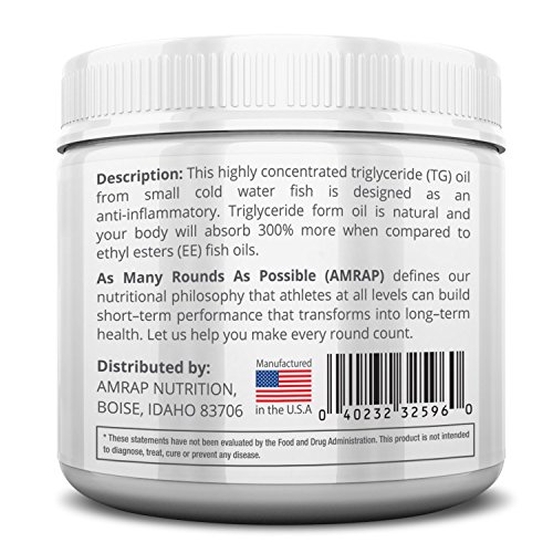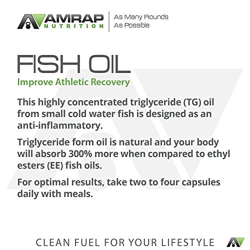 WHAT IT IS: AMRAP Nutrition Fish Oil is a highly concentrated triglyceride omega 3 fish oil produced from small cold-water fish that are wild caught and cold-processed. Triglyceride fish oil is the natural form of omega-3 fatty acids; as such it allows your body to absorb up to 300% more compared to the more common ethyl ester form. Each vacuum-sealed AMRAP Fish Oil softgel contains 720 mg omega-3 fatty acids, including 360 mg EPA and 240 mg DHA. The omega-3 fatty acids in fish oil have excellent anti-inflammatory properties and studies suggest they have significant health benefits for the heart, brain, joints and skin.
