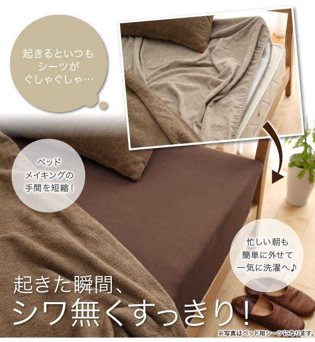 商品について:伸縮性に優れ、幅広いサイズの布団に対応できるスーパーフィットシーツ。伸縮性だけではなく吸汗性に優れたニット生地を採用。立体裁断を施すことでシワやヨレを防止。安心の日本製。