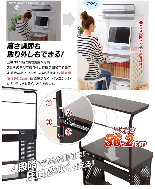 【商品について】■サイズ:外寸(約)幅75×奥行き45×高さ114~134cm■カラー:ブラウン ホワイト■素材:構造部材:スチール/MDF表面加工:粉体塗装/メラミン化粧繊維板■その他:・お客様組み立て商品です。