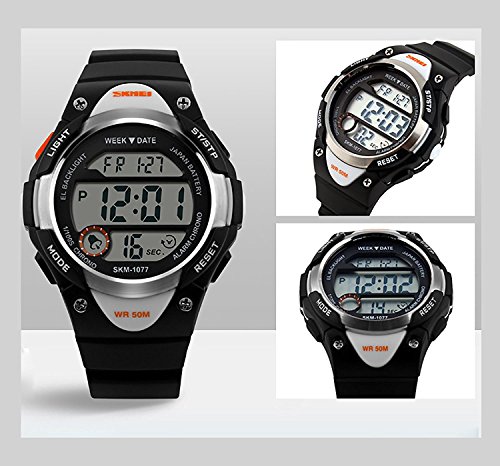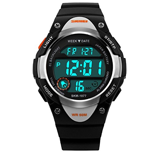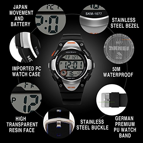 Bo Yi Kids Outdoor Sports Children's Waterproof Wrist Dress Watch With LED Digital Alarm Stopwatch Lightweight Silicone for Boy Girl (Black)