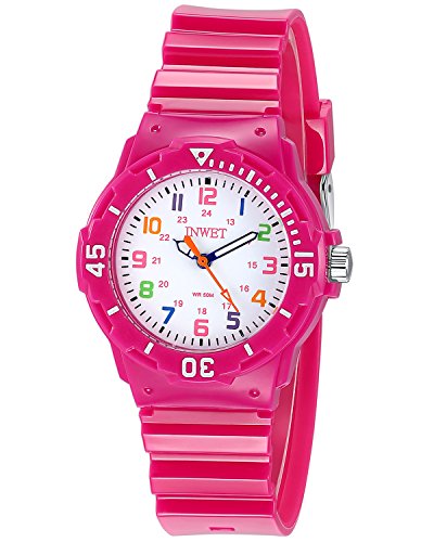 -. Title : INWET Kids Time Teacher Watch,Two Display Modes,Colourful Numbers,Boys Girls Children Watch, Rose Red