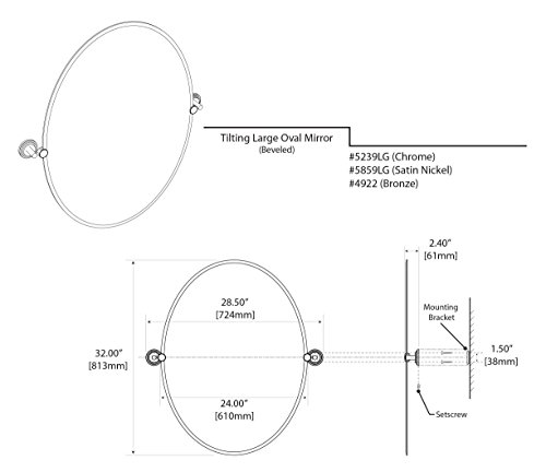 Gatco 5859LG Marina Large Oval Wall Mirror, Satin Nickel