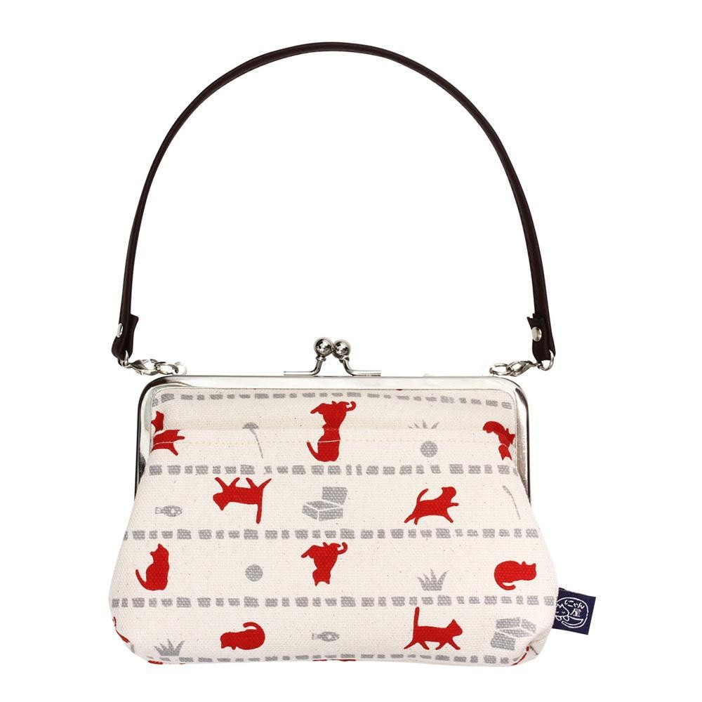 京の染屋が丈夫な帆布を染め上げました。毎日使えて、日々の彩りにもなります。 製造国:日本 素材・材質:布部:綿100%持ち手:合皮 商品サイズ:約11×16×マチ3cm 仕様:洗濯不可 ※サプライヤー直送品 ご注文後3~4営業日後の出荷となります【商品名】にゃん屋 帆布シリーズ 猫と宝物 手提げポーチ 赤 13167