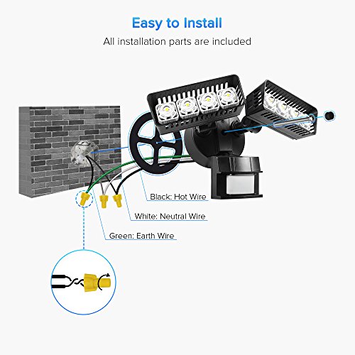 WHAT YOUR GET FROM SANSI: The LED Security Light with two lamp heads and a motion sensor, a Bar-shaped mounting plate and 3 screws, waterproof gasket, 3 wire connectors, mounting bolt, rubber screw plug. And our fan-favorite 5-year warranty and friendly customer service.