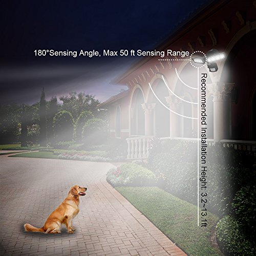180° Wide Sensing Range The sensing light angle of SANSI LED Security Motion Light can reach 180° wide sensing range and max 50ft motion coverage. The recommended installation height is 3.2~13.1ft.