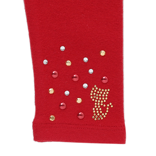 상품설명 톈션좋은 산뜻한 레드 컬러 원단을 사용해 편안하게 활동적으로 입을수 있고, 레드&골드&투명 핫피스들을 흩뿌리듯 밑단에 장식해 반짝거립니다. 데일리로 편안하게, 잘 코디될 레깅스로 소장하고 있으면 두루 활용하기 좋을 아이템입니다.