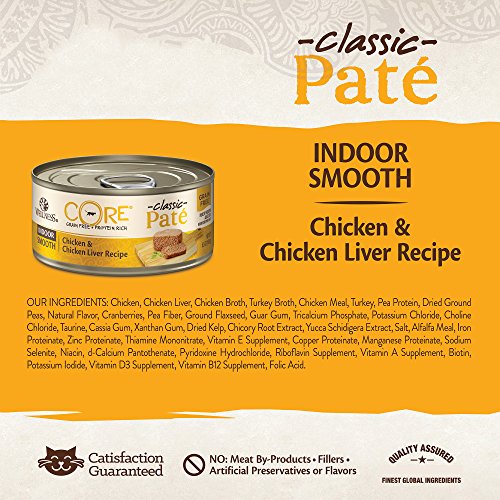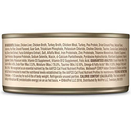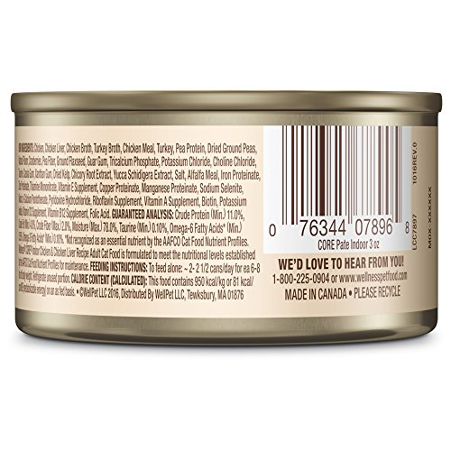 Wellness CORE Natural Grain Free Wet Canned Cat Food, Indoor Chicken & Chicken Liver, 3-Ounce Can (12 pack)