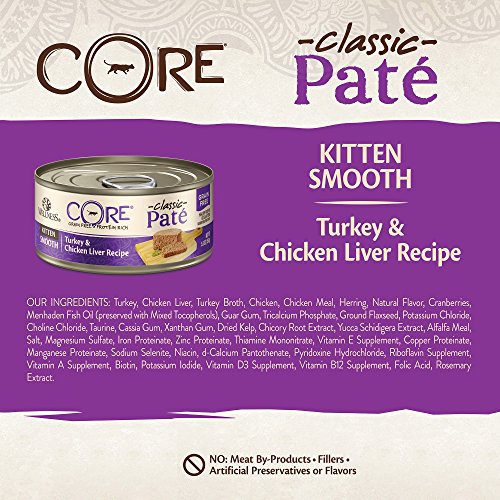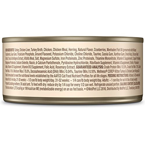 Wellness CORE Natural Grain Free Wet Canned Cat Food, Kitten Turkey & Chicken Liver, 5.5-Ounce Can, Pack of 24