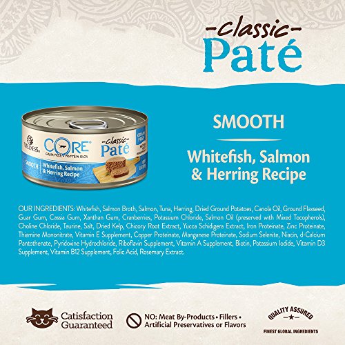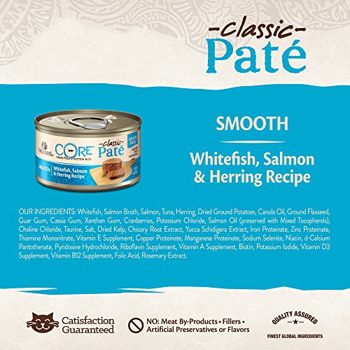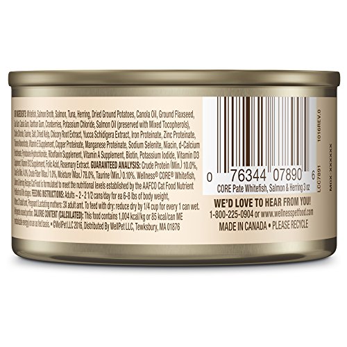 Wellness CORE Natural Grain Free Wet Canned Cat Food, Whitefish, Salmon & Herring, 3-Ounce Can - Pack of 12