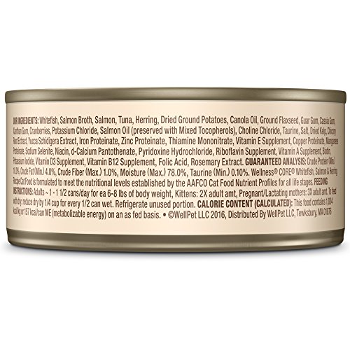 Wellness CORE Natural Grain Free Wet Canned Cat Food, Whitefish, Salmon & Herring, 5.5-Ounce Can , Pack of 24