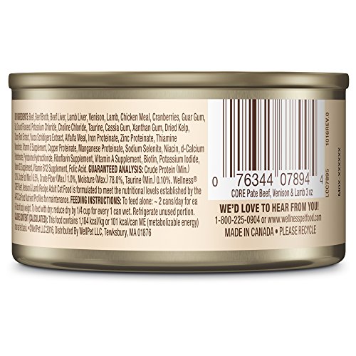 Wellness CORE Natural Grain Free Wet Canned Cat Food, Beef, Venison & Lamb, 3-Ounce Can - Pack of 12