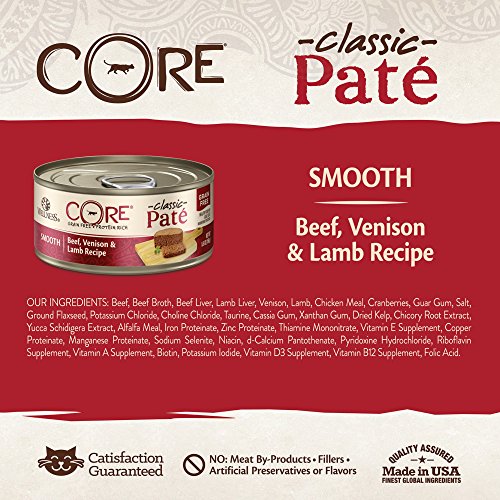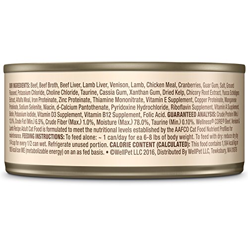 Wellness CORE Natural Grain Free Wet Canned Cat Food, Beef, Venison & Lamb, 5.5-Ounce Can (Pack of 24)