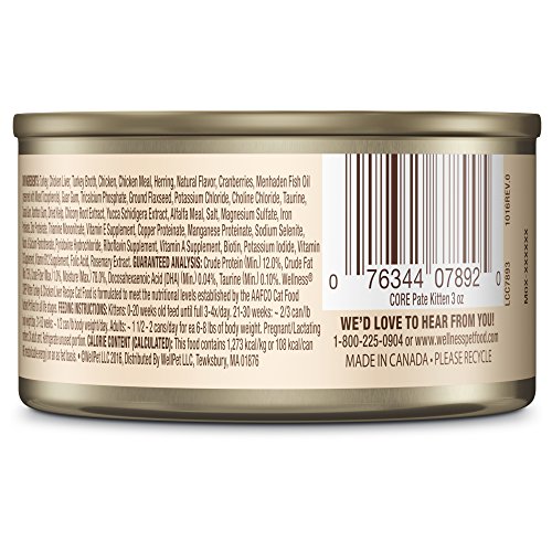 Wellness CORE Natural Grain Free Wet Canned Cat Food, Kitten Turkey & Chicken Liver, 3 oz can - 12-Pack