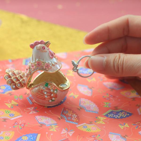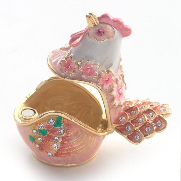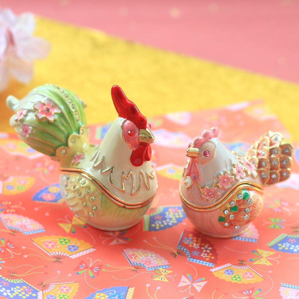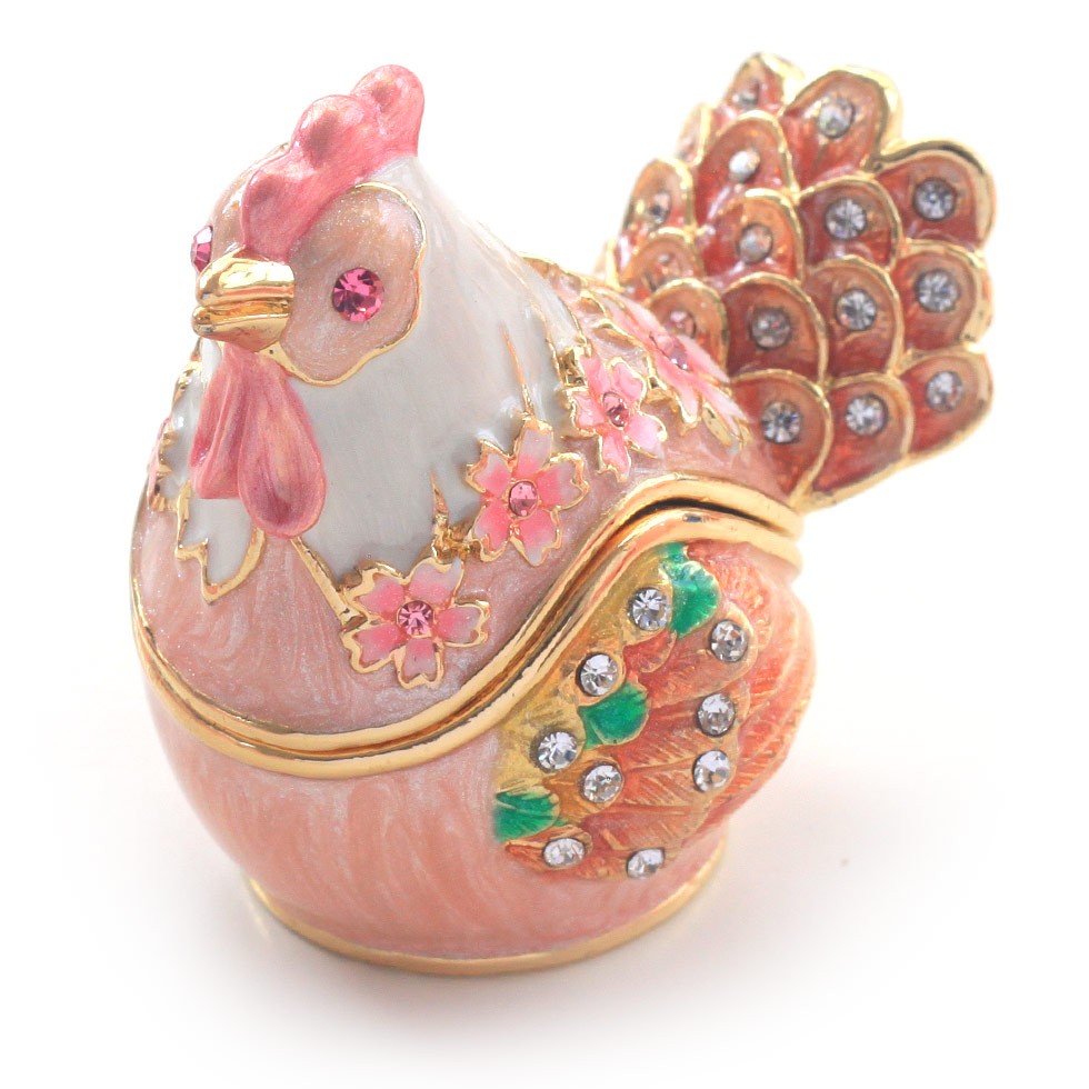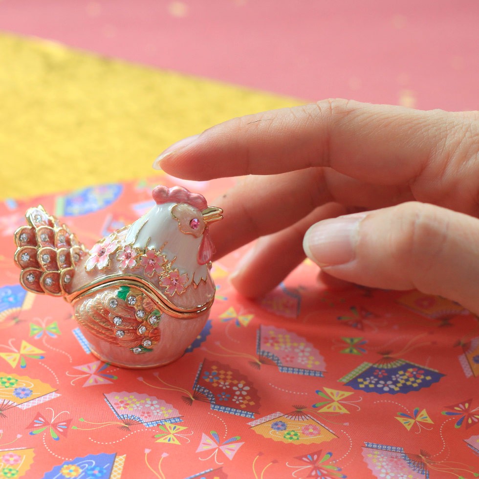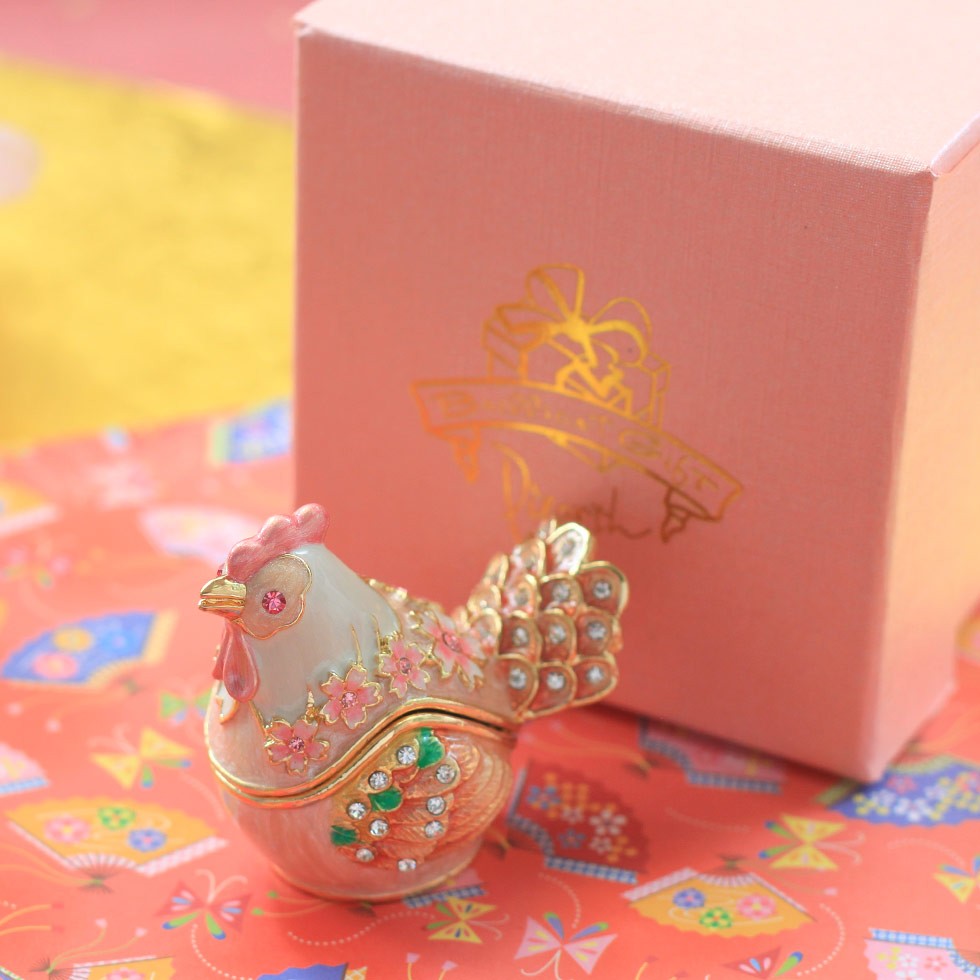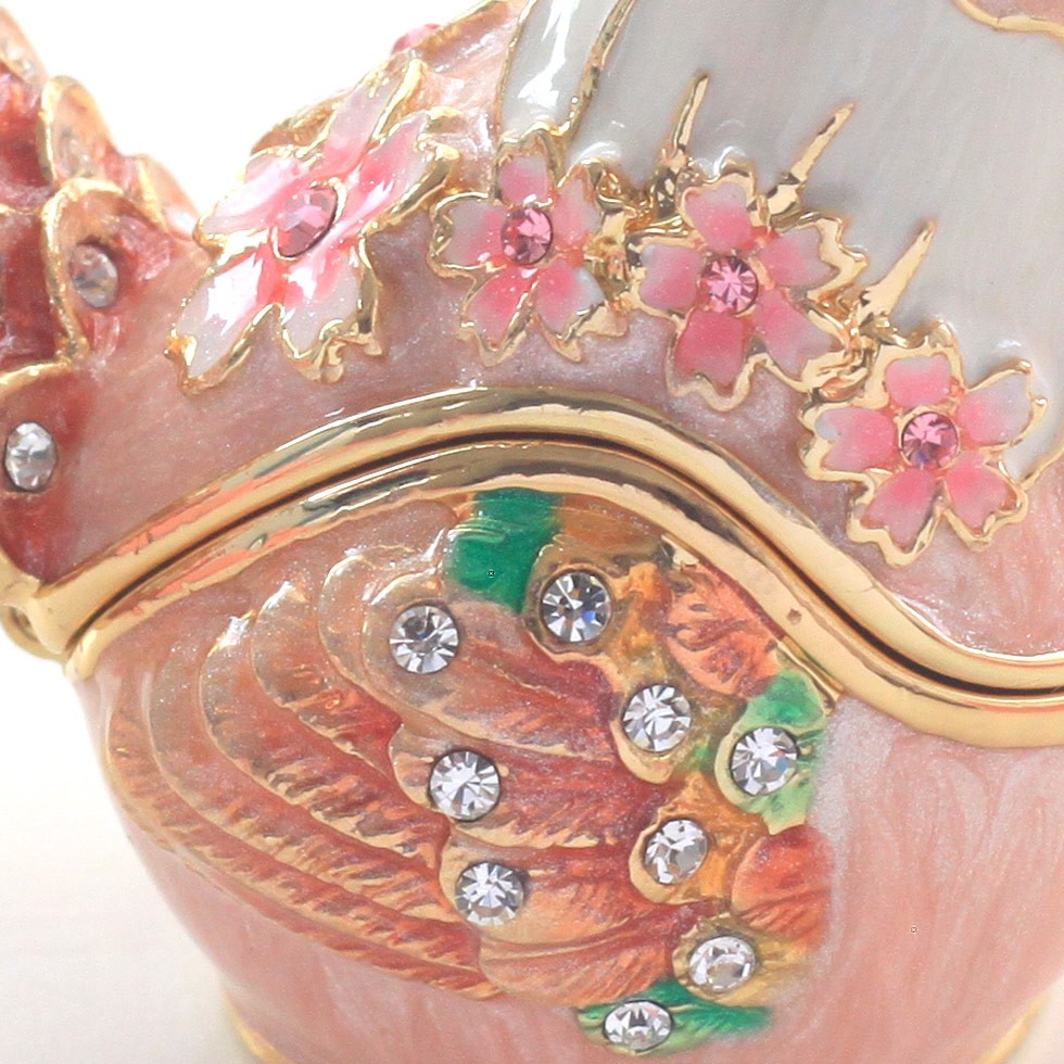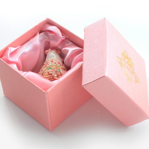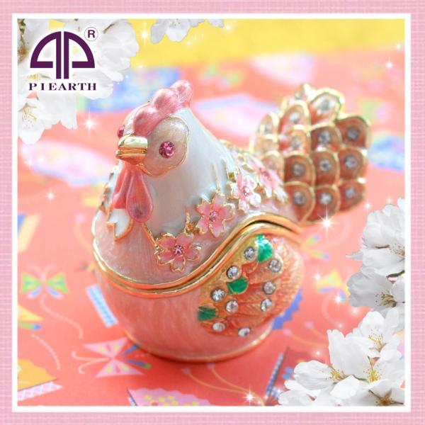 | ジュエリーボックスと言えば、指輪やピアス、ネックレスなどのアクセサリーを入れる引き出し型のケースを思い浮かべる方が多いかもしれません。 ピィアースのジュエリーボックスは、動物や花などをモチーフに作られ、合金製でずっしりとした重さがあります。また高品質のクリスタルガラスを贅沢に使用。まるでジュエリーボックスそのものが宝石のような、高級感溢れる仕上がりです。 小物入れとしても使えるように開閉口には磁石が取り付けてあり、アクセサリーなどなくしやすいアイテムの収納ができます。キラキラと美しく輝く宝石箱は、そのまま飾って楽しめるインテリア雑貨として多くの方に愛されています。 国内トップクラスのジュエリーボックスメーカーであるピィアースは、2004年ごろから本格的に宝石箱の製造を始め、現在のジュエリーボックスはなんと300種類以上。大規模展示会でもご好評いただいており、全国有名百貨店でも販売されています。 自社工場でひとつひとつ丁寧に手作りし、原型作成、研磨、加工、着色、小さなクリスタルガラスの取り付けなども全て手作業で行われるこだわりのハンドメイド品。完成後は厳しい検品の後、丁寧に梱包作業をしお客様にお届けしております。 ピィアース商品は、全国有名百貨店および全国有名宝石店チェーンにてお取り扱いいただいている高品質商品です。 ★自分へのご褒美に…コレクションして並べて飾ると、さらにかわいらしさUP! ★恋人へのプレゼント…中にアクセサリーを入れて、サプライズな贈り物として ★家族への感謝ギフト…お母さんや姉妹へ、日頃のありがとうの気持ちを込めて ★誕生日プレゼント…お友達の喜ぶ顔が見たいから、いつもと違うキラキラギフトを ★小さな女の子へ…まるでお姫様が使っているようなキラキラ宝石箱は女の子の憧れ! |