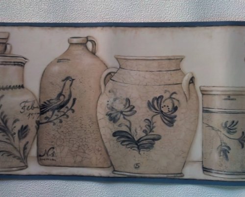 -. Feature : 6.75 Inches Wide. 15 Foot Long Prepasted Flat Packs / Country Crocks, Earthware, Pottery, Jars / Country Themed Wallpaper Border / Pattern 30904010 - Also known as 83062170