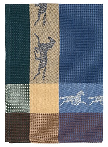 100% Cotton Blue & Beige 20"x28" Dish Towel, Set of 6 - Horse Ink