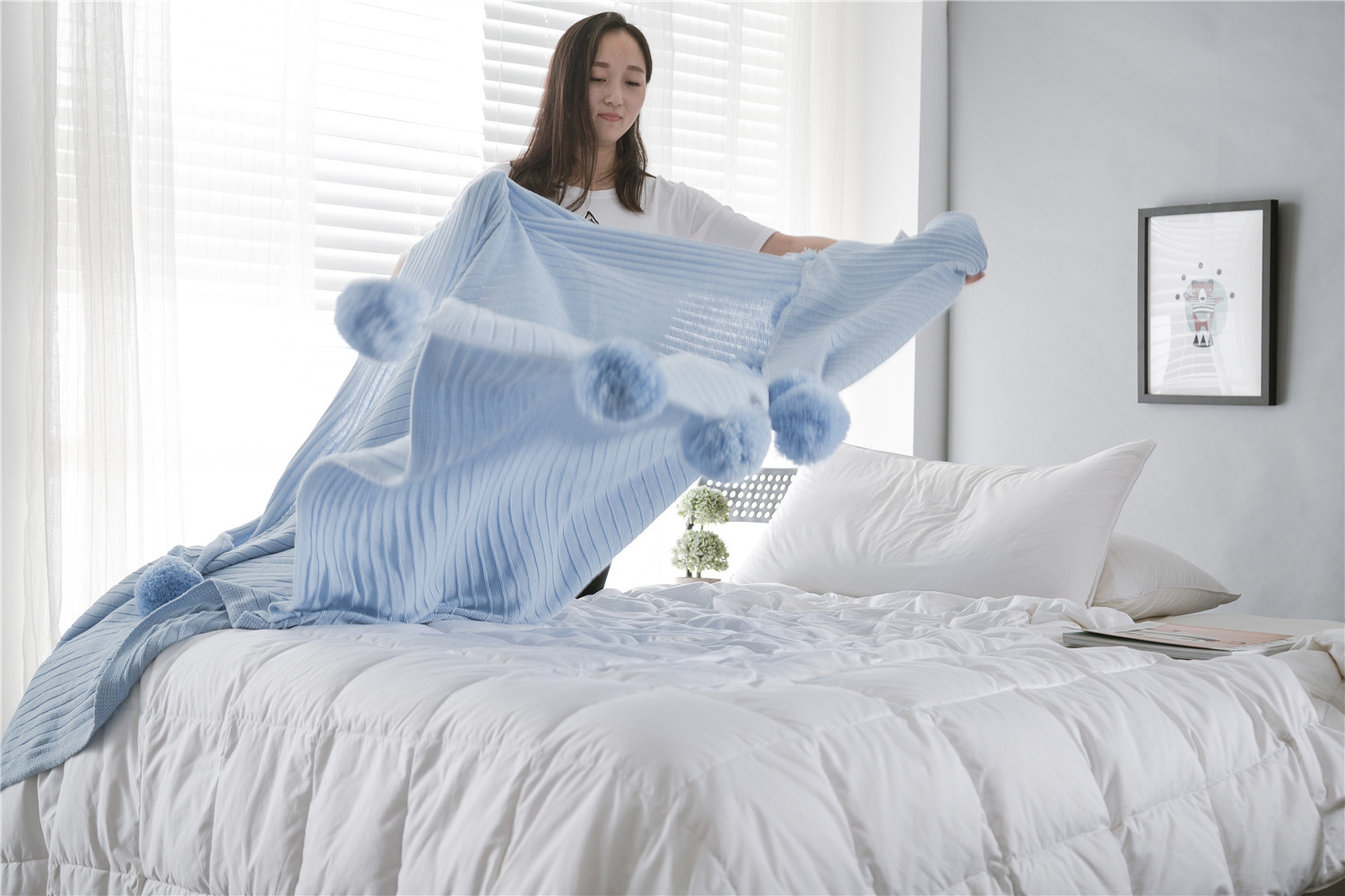 【用途】:可贴肤作盖毯,午睡毯,软装配饰毯子,外出时可以做抱毯,小朋友坐车上也可以盖毯,夏季睡觉时作盖毯。。。。。。。。