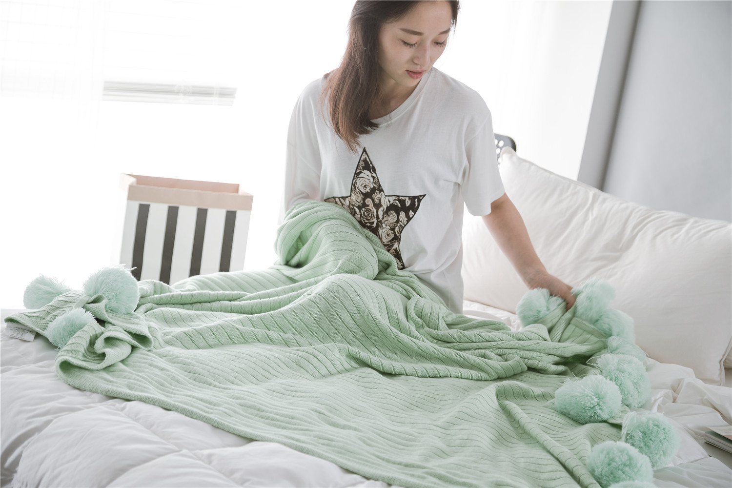 【品名】:手工大球毯子