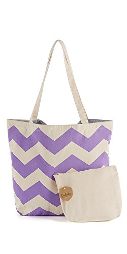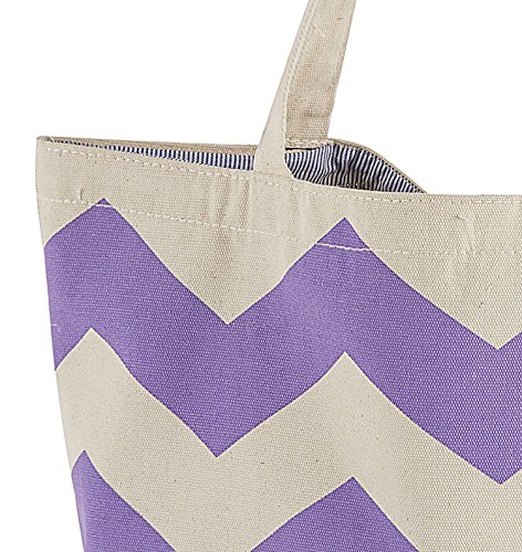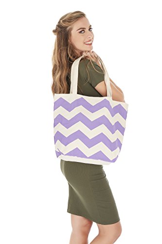Multi-Purpose Chevron Canvas Shopping/Beach Tote Shoulder Bag with Pouch - 11"x13"x6"
