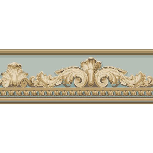 -. Title : Wallpaper Border Designer Aqua Cream Tan Beige Architectural Faux Molding