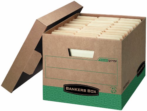 Bankers Box R-Kive 100% Recycled Heavy-Duty Storage Boxes, Letter/Legal, Kraft/Green, 12 Pack (12775)