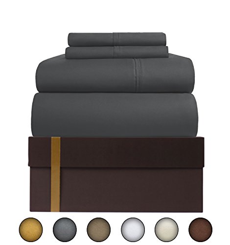 Egyptian Cotton Sheets Set (4 Piece) 500 Thread Count - Bedspread Deep Pocket Premium Bedding Set, Luxury Bed Sheets for Hotel and Home Collection Soft Sateen Weave Perfect Gift (Queen, Elephant Grey)