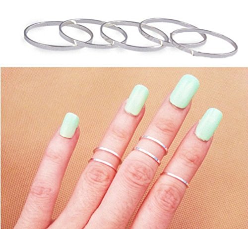 -. Title : EUBUY Fashion Women Girls 5 PCS Set Rings Stack Plain Above Knuckle Rings Band Mid Finger Rings (Silver)