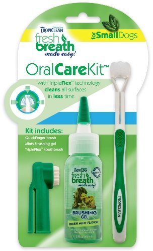 Brushing gel, tripleflex toothbrush and quickfinger brush for use on med-large dogs. Great for travel too.