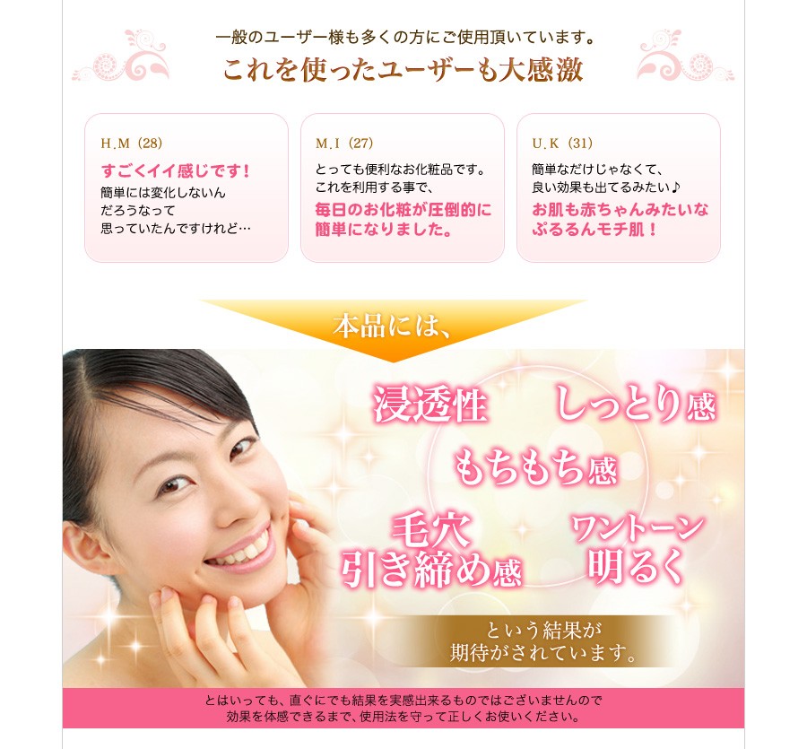●洗顔後、適量をお顔にやさしくなじませて下さい。